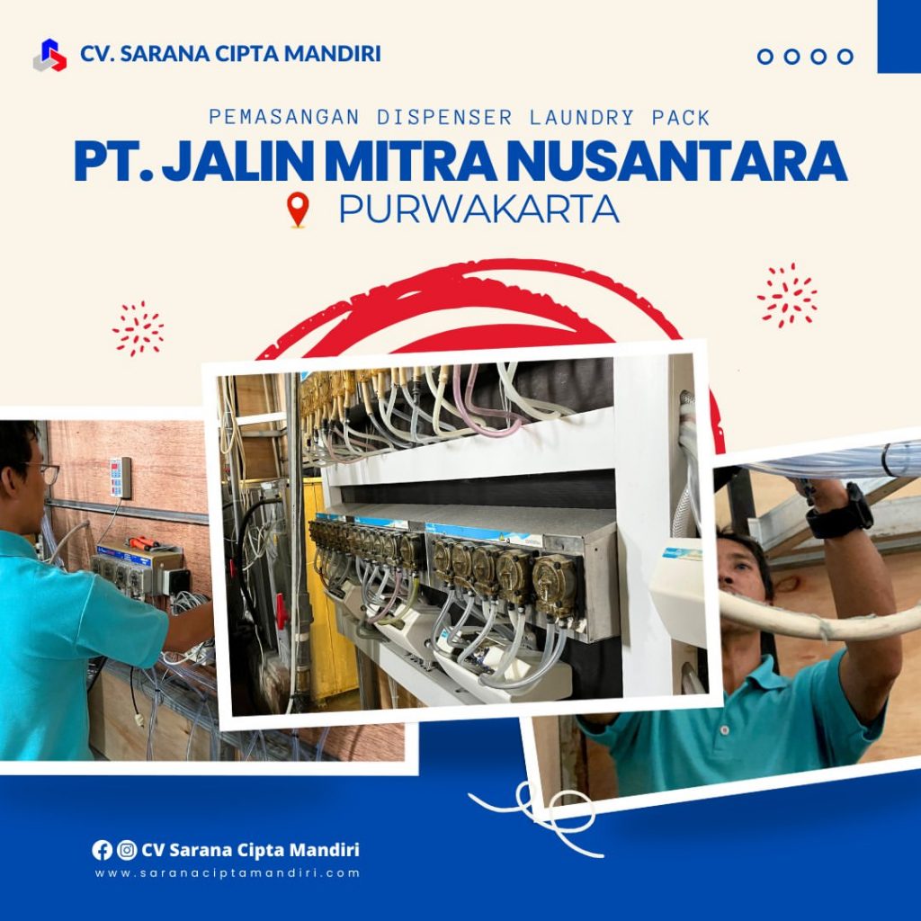 On Wednesday, May 29, 2024, we installed a laundry dispenser at PT Jalin Mitra Nusantara in Purwakarta, West Java. This installation is part of our commitment to providing customers with a more effective and efficient laundry process—optimizing time, energy, and the precise use of chemicals. By doing so, we aim to minimize waste while ensuring outstanding laundry results.